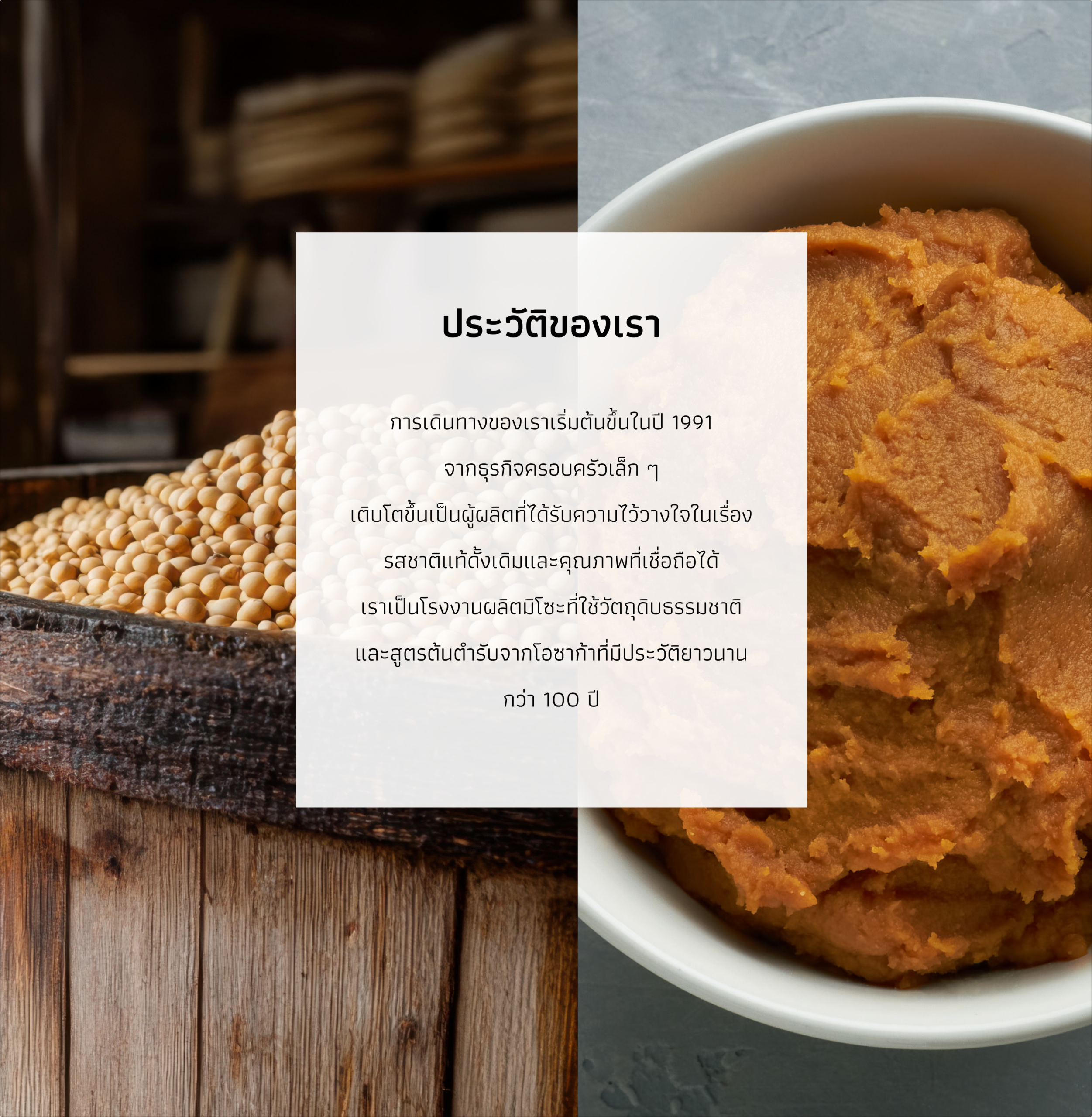 เราเป็นโรงงานผลิตมิโซะที่ใช้วัตถุดิบธรรมชาติ